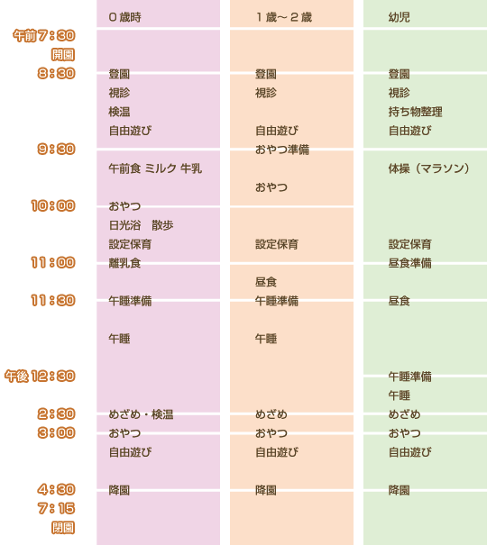 ふじの実保育園のデイリープログラムのご紹介です。